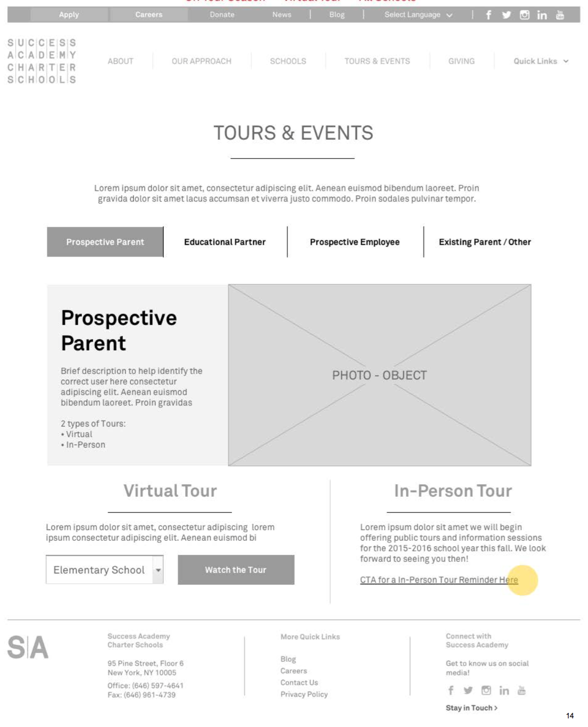 Success Academy is a network of world-class charter schools across New York City. It also serves as a catalyst and national model for education reform through its writing platform Mission Possible. SA asked Makeable to help them show off their creative instructional approach by updating their website. I did wireframes and visual design for visual tour and in-person tour sections for Success Academies, New York.